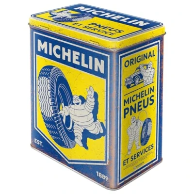Nostalgic Art Retro storage tin box l, 3 Michelin vintage Gift idea for motor fans, large metal tin, design