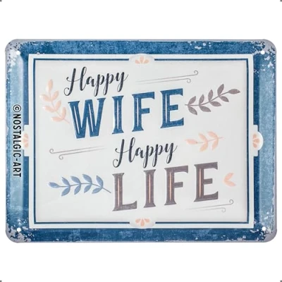 Nostalgic Art Retro Tin Sign Happy Wife Life Gift idea for fans of nostalgia, Metal Plaque, Vintage design wall decoration, 15 x 20 cm