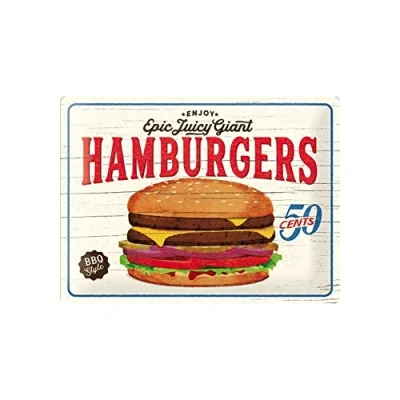 Nostalgic Art Retro Tin Sign USA Hamburgers Gift idea for & Diner fans, Metal Plaque, Vintage design wall decoration, 30 x 40 cm
