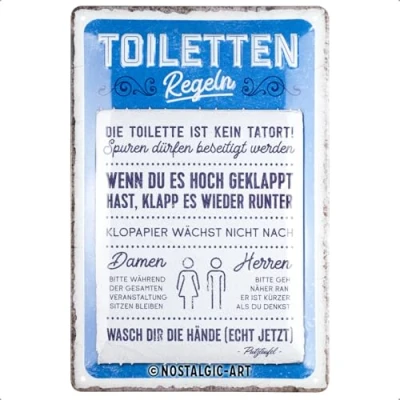 Nostalgic Art Toilet Rules Gift idea for Your Home, Made of metal, Vintage Design with Saying, 20 x 30 cm
