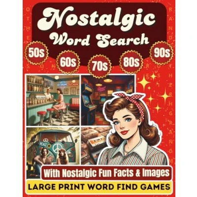 Nostalgic Large Print Word Search: Retro Wordfind Brain Game Puzzles for Seniors & Adults: Fun Facts Images from the 1950s 90s Relaxing ... Activity Book Gifts