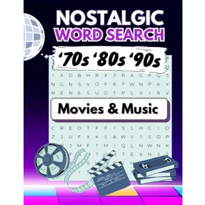 Nostalgic Word Search 70s 80s 90s Movies and Music: Retro Wordfind Puzzles For Adults