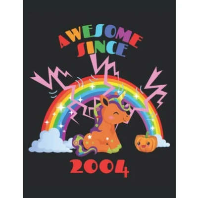 Notebook: Cute unicorn with rainbow and thunder Awesome since 2004