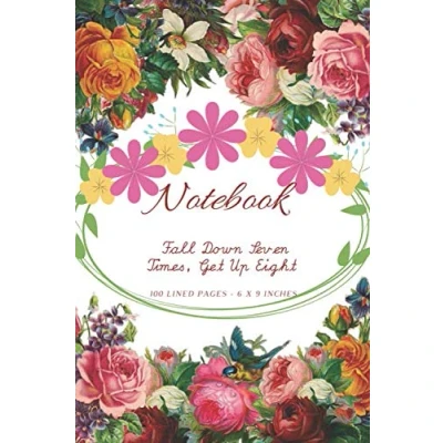 Notebook : Fall Down Seven Times, Get Up Eight 100 Lined Pages 6 x 9 Inches: Inspirational Writing Journal Flowers For Women & Girls