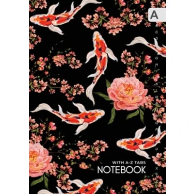 Notebook with A Z Tabs: A5 Lined Journal Organizer Medium Alphabetical Tabs Printed Koi Fish Flower Japanese Design Black