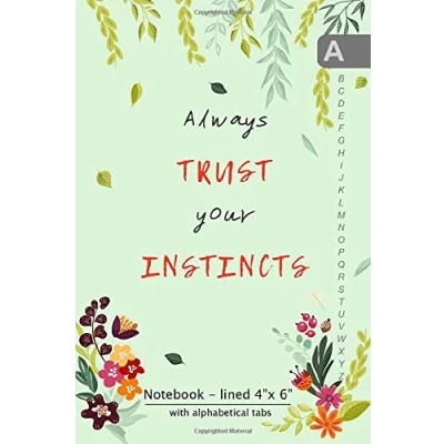 Notebook with Alphabetical Tabs 4x6: Small Lined Journal Organizer A Z Printed Floral Design Green
