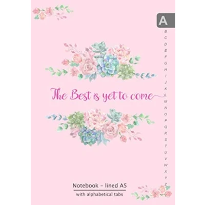 Notebook with Alphabetical Tabs A5: Medium Lined Journal Organizer A Z Printed Cute Flower Quote Design Pink