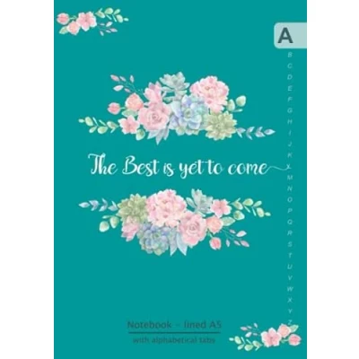 Notebook with Alphabetical Tabs A5: Medium Lined Journal Organizer A Z Printed Cute Flower Quote Design Teal