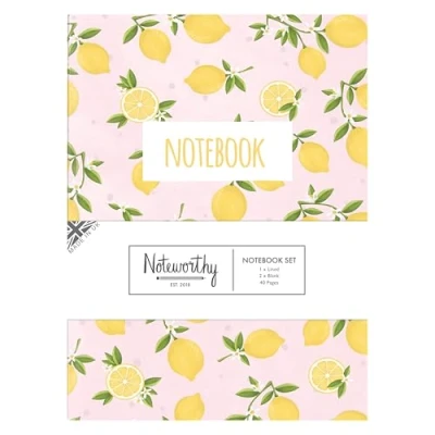 Noteworthy Notebook Set Lemons, A5 Pack of 3, 40 Page, 100gsm, Lined & Plain Paper Journal Notepads, For Art Crafts, Small Pocket Book Exercise Note Pad Students, Home, Schools, Drawing, Writing