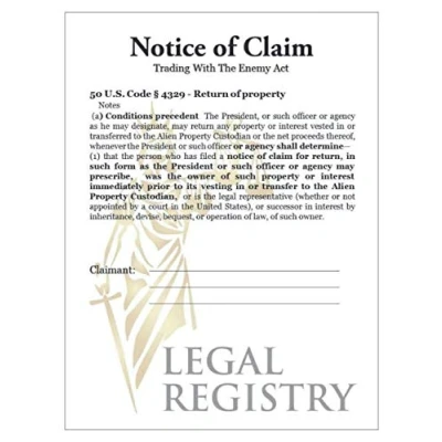 Notice of Claim: Trading With The Enemy Act (Peter's Liberation Planet Earth)