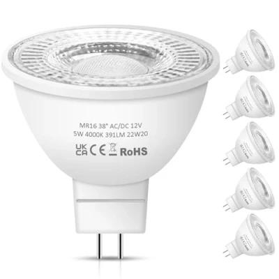 Nottac MR16 LED Bulbs, 12V 5W (50W Halogen Equivalent) Natural White 4000K 38Beam Angle for Indoor Outdoor Landscape, Recessed, Track Lighting, GU5.3 Bi Pin Base, 6 Pack