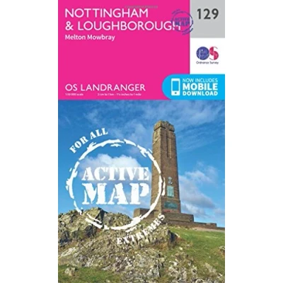 Nottingham & Loughborough Map Weatherproof Melton Mowbray Ordnance Survey OS Landranger Active 129 England Walks Cycling Days Out Maps Adventure