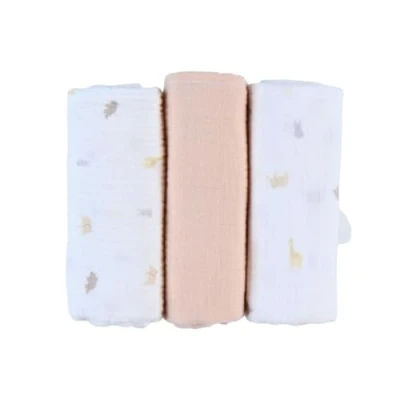 Noukie's Set of 3 Mix & Match Swaddles Organic Chiffon Beige Animal Motifs