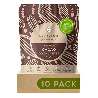 Nourish Organic Cacao Coconut Bites, Vegan, Gluten Free, Dairy Keto Snacks, Pack of 10 x 40g