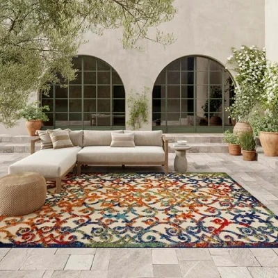 NOURISON Aloha Indoor/Outdoor Transitional Floral Multicolor 6' x 9' Area Rug
