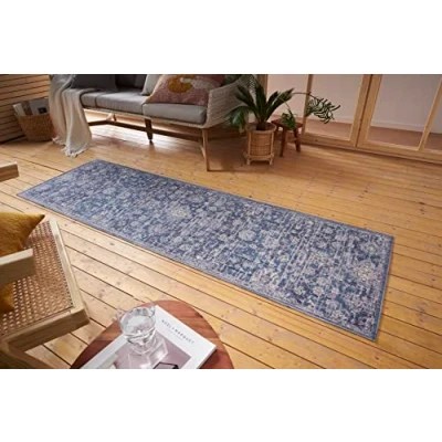 Nouristan Alexandria Indoor & Outdoor Rug Oriental Flat Weave in Pattern Vintage Washable, Weatherproof UV Resistant for Balcony, Patio, Garden, Living Room Blue, 75 x 200 cm