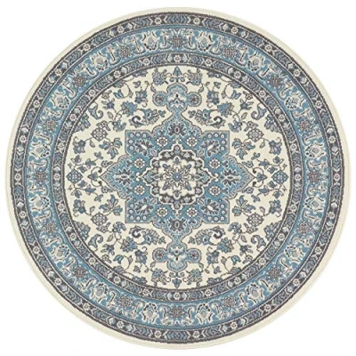 Nouristan Mirkan Orient Round Living Room Rug Short Pile Vintage Oriental for Dining Room, Bedroom Cream Sky Blue, 160 cm, Polypropylene, Diameter cm