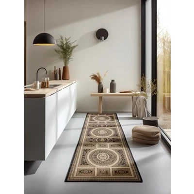 Nouristan Oriental Rug Runner Classic Living Room Densely Woven with Border Flat Weave for Room, Bedroom, Dining Hallway Black Cream, 80 x 240 cm