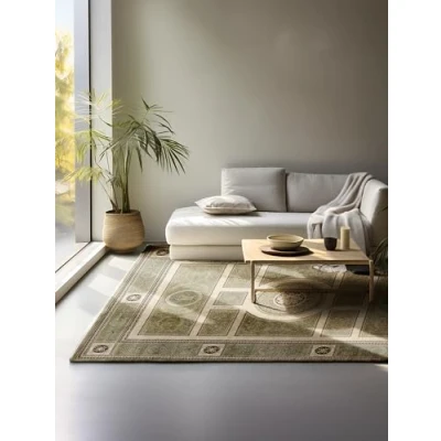 Nouristan Oriental Rug Runner Classic Living Room Densely Woven with Border Flat Weave for Room, Bedroom, Dining Hallway Olive Green, 80 x 120 cm