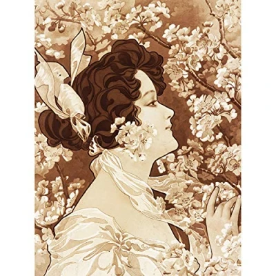 Nouveau Frau blühender Baum Gemälde ungerahmt Wandbild Kunstdruck Poster Home Decor Premium