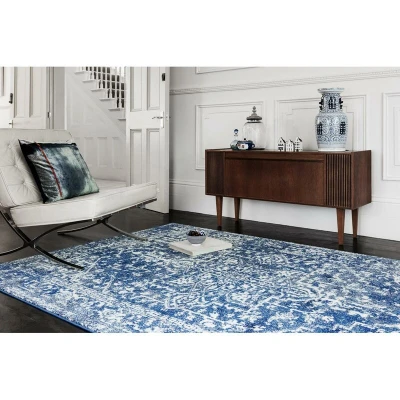 General description This Nova Antique Traditional NV11 Modern Rug features a sophisticated blue design that combines abstract painterly traditional and distressed vintage style patterns. With a mid-height pile of 9mm, this rug is perfect for adding texture and interest to any neutral home, enhancing your contemporary interior. Technical specifications Material: 100% Heatset Polypropylene Construction Technique: Loom Woven Pattern: Modern, Abstract, Painterly, Distressed, Traditional Type: Antique, Abstract Classic Bordered Sizes Available: 120x170 cm (4'x5'6"), 160x230 cm, 200x290 cm Weight: 2250 GSM Pile Height: 9 mm Usage Stain resistant and non-shedding Colourfast and easily cleaned Teenager proof, suitable for various settings