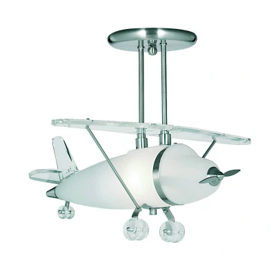 Crafted to resemble a realistic airplane model, this semi-flush ceiling light is not only a source of illumination but also a charming décor piece that sparks joy and creativity. The satin silver finish adds a touch of elegance, ensuring that it blends seamlessly with various interior styles while enriching the overall aesthetic of the room. Its attention to detail makes it an attractive focal point that children and adults alike will appreciate.