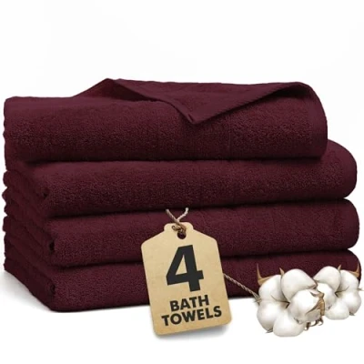 Novo Home Bath Towels Set of 4 100% Cotton Burgundy Extra Large for Bathroom, Spa Use (70x140 cm) Super Soft and Quick Dry Sheets Adults
