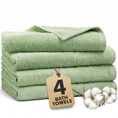 Novo Home Bath Towels Set of 4 100% Cotton Light Green Extra Large for Bathroom, Spa Use (70x140 cm) Super Soft and Quick Dry Sheets Adults