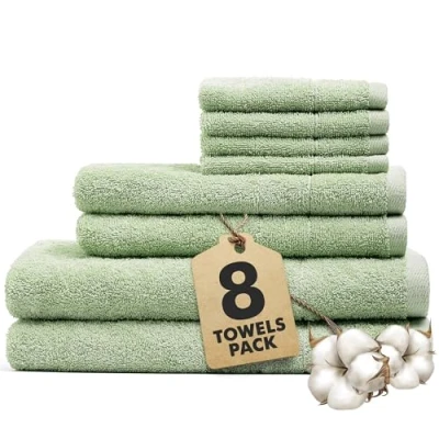 Novo Home Bath Towels Set of 8 100% Cotton Light Green Towel Bale Includes 2 Bath, Hand, 4 Face Soft, Absorbent & Quick Dry for Bathroom, Spa, Kitchen, Hotel Use