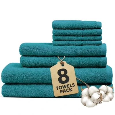 Novo Home Bath Towels Set of 8 100% Cotton Teal Towel Bale Includes 2 Bath, Hand, 4 Face Soft, Absorbent & Quick Dry for Bathroom, Spa, Kitchen, Hotel Use