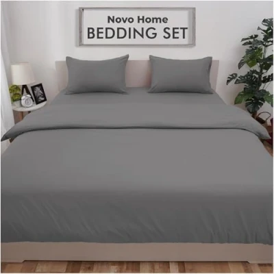 Novo Home Bedding Set Single with Fitted Sheet, Duvet Cover & 1 Pillowcase Grey Microfibre 3 Piece Bed Soft, Durable Easy Care for All Season Comfort in Modern Bedroom