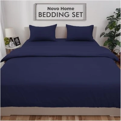 Novo Home Bedding Set Single with Fitted Sheet, Duvet Cover & 1 Pillowcase Navy Blue Microfibre 3 Piece Bed Soft, Durable Easy Care for All Season Comfort in Modern Bedroom