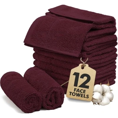 Novo Home Face Towels Pack of 12 100% Cotton Washcloths (30x30cm) Soft, Quick Dry, Highly Absorbent Flannels for Bathroom, Spa, Gym Burgundy