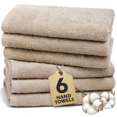 Novo Home Hand Towels for Bathroom 100% Cotton Soft & Absorbent Pack of 6 Small Towel (50x85cm) Quick Dry Luxury Beige