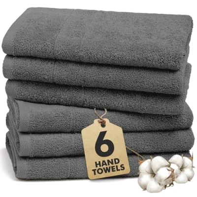 Novo Home Hand Towels for Bathroom 100% Cotton Soft & Absorbent Pack of 6 Small Towel (50x85cm) Quick Dry Luxury Dark Grey