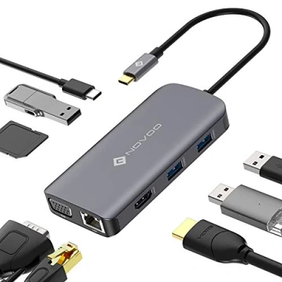 【NOVOO Docking Docking Station for Laptop USB C R Pond to Your Daily Needs】This USB C hub converts a single type C into 9 different ports that enter the following place: USB C to HDMI 4K and VGA 1080P, USB 3.0*3, Type-C Power Delivery 100W charging port, SD and Micro SD card reader, Ethernet RJ45 1000 Mbit. Ps. It is suitable for office work, conf, home work, teaching, gaming or watching movies. 【The small adapter】USB C supports SST in Windows and Mac OS mirror or extend your screen via HDMI or VGA or the two ports simultaneously (with the m image). Perfect for projecting your PPT and enjoying a 3D movie in a bigger look. 【100W Type-C Pass Charging】Through on the USB C hub can continue to provide enough power for most computers, MacBook Pro 16 inch (96 watts power) for long-term use. RJ45 LAN enables a stable connection to the Gigabit cube, no need to stack and no interference with USB 3.0. 【Efficient & Versatile Multiport USB C Hub Adapter】With all USB 3.0 ports for high-speed data transfer up to 5Gbps. Two SD and Micro SD memory cards accessible simultaneously, you can pass files between them. Plug and play, does not leave any software or drivers 【Worry-free Purchase】Our advanced single chip ING USB C hub offers more reliable performance and will not damage your computer and your connected devices. FCC, CE and RoHS certified. not to mention that it is also supported for 24 months