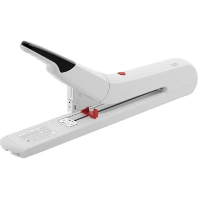 Large and strong heavy duty stapler Features include: backloading system, metal magazine guide, double staple guide Comes with anti-blocking system and express trouble-shooter Capacity 210 sheets, standard 80g paper Takes 100x23/8 - 23/24 SUPER