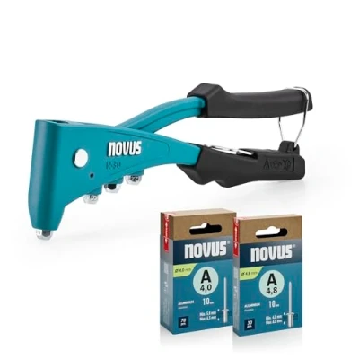 Professional quality – robust blind rivet pliers for universal use in crafts and in the workshop. The durable device body made of high-quality aluminium and a robust steel forged lever guarantee maximum stability and durability. Versatility for professionals – uses blind rivets made of various materials (aluminium, steel, brass, copper, titanium and more) up to a diameter of 4.8 mm for almost all professional applications. Low-wear construction – particularly high-quality chuck mechanism ensures an exceptionally long service life and reliable function even after intensive, long-term use. Ergonomic work – the easy one-hand operation thanks to integrated return spring, the independent mandrel ejection and the sophisticated handle design ensure fatigue-free work even on extensive projects. Practical details: handle lock for safe storage when not in use as well as integrated mounting key for quick mouthpiece change. The 4 interchangeable mouthpieces are stored practically directly on the rivet pliers. Complete starter set – includes 100 aluminium blind rivets in different sizes for an immediate start of work., Weight: 1.28088574222 Pounds, Manufacturer: Novus