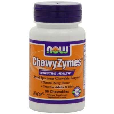 NOW Foods ChewyZymes (90 chewables) are full-spectrum, berry-flavored chewable digestive enzymes suitable for adults and children. This vegan, non-GMO formula supports optimal digestion with BioCore® enzymes that remain active throughout the digestive tract’s pH range.