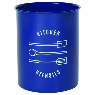 Made from food safe powder coated galvanized steel Utensil crock is made from food safe materials Measures 7 inches tall and 5 inches in diameter Perfect for keeping your favorite cooking utensils on hand Front features kitchen utensil drawing