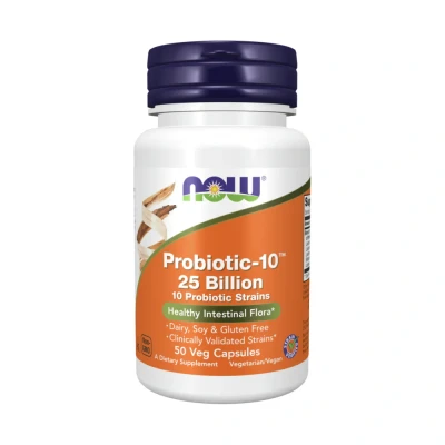 Probiotic-10™ 25 Billion capsules from NOW Foods () provides a comprehensive blend of ten key probiotic strains to support a healthy microbiome and boost overall health.
