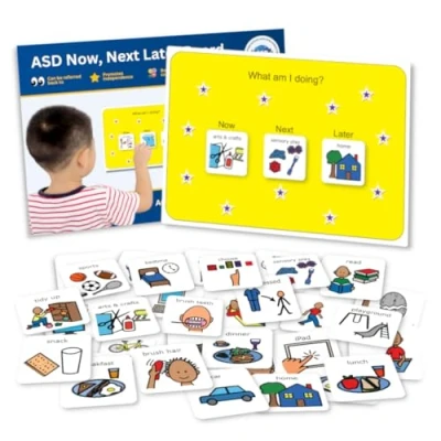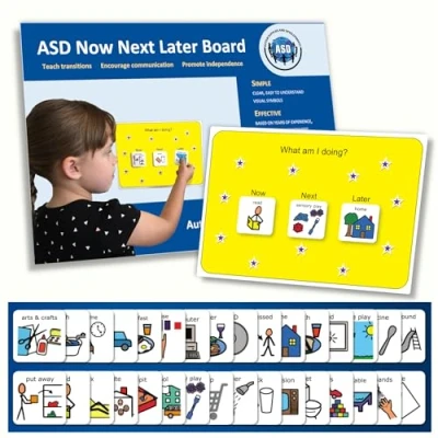 Supports Daily Routines – Daily routine chart for children - Now Next Later Board. Promotes focus on the current activity, while providing reassurance about what will happen later. Offers a predictable and reassuring structure. Perfect for kids or toddlers who need support staying on track, or who suffer with and anxiety. Great for EYFS. Simple Visual Layout – 3 symbols on the schedule board - shows the current task, the next one and one that will happen later on. An inclusive and accessible daily schedule for kids - does not overwhelm your child with too much information. Expertly Designed – 32 x genuine Picture Communication Symbols (PCS) included. 4.5cm easy-to-hold size. Designed by experts specifically for autistic children or those with ASD/ADHD. Used by millions globally for over 30 years. Probably already familiar to your child from school or therapy. Compatible with PECS cards. Sturdy And Practical – Premium plastic material. Waterproof, highly durable and easy to clean - perfect for an autism household! Will not split, rip or easily crease like laminated paper or cardstock. Will last for years. Promotes Confidence – Visual aid empowers children to take charge of their daily activities. Builds self-esteem and develops essential life skills. Leads to increase in confidence that extends to other areas of their life., Manufacturer: Autism Supplies & Developments