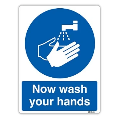 Now Wash Your Hands Sign, A6 148x105mm, Vinyl Sticker Mandatory Kitchen Safety Signs