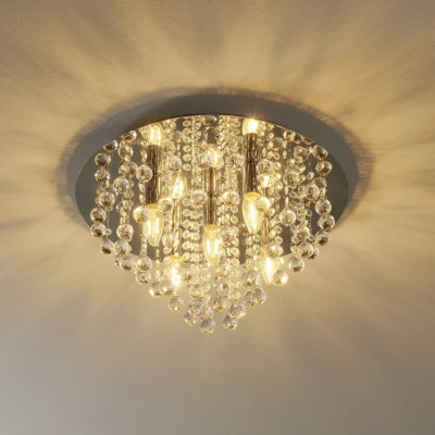 Lights.coImpressive light effects with the Linden ceiling light This round ceiling light impresses with its elaborate glass elements The mirror panel makes it look even more effective and radiant. The chrome-coloured frame gives the ceiling light a certain neutrality, which blends well with any design style.