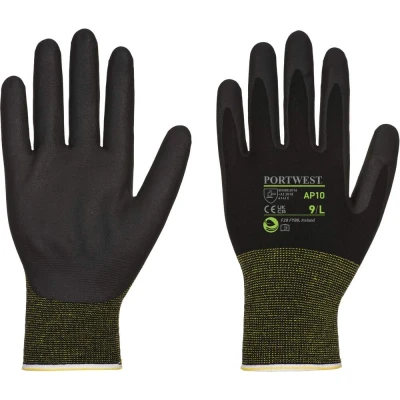 Introducing the Portwest NPR15 Foam Nitrile Bamboo Glove - 12 pack - Black: an amalgamation of cutting-edge technology, nature's touch, and an unwavering commitment to excellence. Crafted meticulously with a 15-gauge liner that's born from sustainable bamboo fabric and sturdy nylon, this glove promises the best of both worlds - nature's benefits and man's ingenious craftsmanship.Key Features: Sustainable Bamboo Liner: Ensuring that nature and industry go hand in hand, the bamboo used is not only sustainable but is also naturally anti-bacterial, hypoallergenic, and offers resistance to UV light. Soft Nitrile Foam Coating: Provides an exceptional grip across varying conditions, whether it's the unpredictability of wet environments or the steadiness of dry ones. Excellent Durability: A promise of resilience and longevity that stands tall irrespective of the working conditions. Palm Dipped: Further augmenting dexterity and ensuring proper ventilation, making long hours of work more comfortable. 15 Gauge Liner: A testimony to its superior dexterity, ensuring your hands move seamlessly in any task. Retail Tag Included: Designed keeping in mind the retailers, it aids in an effective presentation for retail sales. CE Certified: A seal of approval that it matches and exceeds industry standards. New Style: A fresh design approach ensuring you're not just protected but also in vogue.Industry Standard Compliance: SATRA Technology Europe Ltd: An acknowledgment of the glove's superior quality and commitment to stringent testing norms. EN ISO 21420: 2020 Dexterity 5: Validates the glove’s unparalleled dexterity, ensuring fluid and comfortable handling. EN 388: 2016 + A1: 2018 (4121X): Affirms the glove's robust protective features against potential risks.Whether you're in construction, manufacturing, or any other industry, the Portwest NPR15 Foam Nitrile Bamboo Glove is a testament to what's possible when the best of nature meets the zenith of human innovation. Opt for this 12-pack and arm your team with gloves that protect, perform, and preserve.