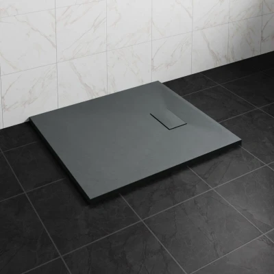 General description NRG 1100 x 800mm SMC Anthracite Rectangle Slate Effect Bathroom Shower Tray combines durability with elegance. Made from SMC materials, this shower tray is designed to withstand the rigors of daily use while providing a sophisticated stone pattern that enhances the aesthetic of any bathroom. Its non-slip surface ensures safety during use, making it an ideal choice for families. Technical specifications Tray Type: Rectangle Colour: Anthracite Material: SMC Non-Slip Surface: Yes Height: 32mm Length: 1100mm Width: 800mm Waste Hole Size: 90mm Waste Location: Side of Tray Drain Cover Size: 20x12cm Installation It is recommended to have this shower tray installed by a qualified professional to ensure proper fitting and functionality. Please note that the waste is sold separately. Usage The lightweight design of the shower tray makes it easy to handle during installation, while its smooth, non-porous surface allows for easy cleaning and maintenance, promoting hygiene in