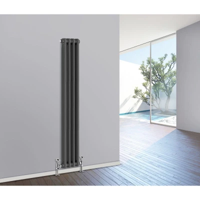 General description Our NRG Traditional Cast Iron Style Radiator offers a heating solution that combines a classic design with competitive pricing. Specially tested, it helps you maximize your available space while easily fitting into your central heating system like a standard household radiator, ensuring a straightforward installation process. Technical specifications Material: 1.5mm Cast Iron style SPCC Steel Size: 1500 x 200 mm Panel: Double Column Finish: Durable high-quality Anthracite Water inlet/outlet size: 1/2" Tested to BS EN442 standards Other information All radiators come with a manufacturer-leading 15-year guarantee Brackets and fixings included (valves are not included)
