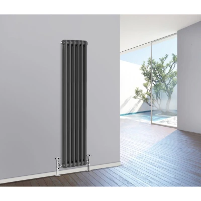 General description Our Traditional Radiator offers a heating solution with a classic design at a competitive price. Specially tested, it helps you maximize your available space while easily fitting into your central heating system like a standard household radiator, ensuring a straightforward installation. Technical specifications Material: 1.5mm Cast Iron style SPCC Steel Size: 1500 x 290 mm Panel: Double Column Finish: Durable Anthracite Water inlet/outlet size: 1/2" High heat output Tested to BS EN442 standards Other information Brackets and fixings included (valves not included) 15-year guarantee
