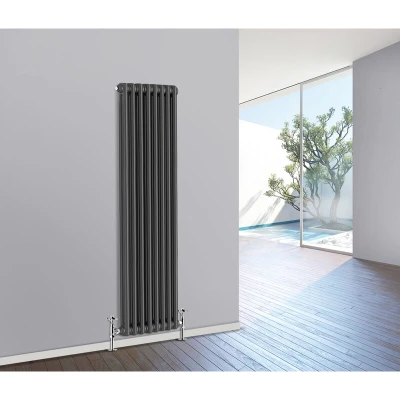 General description Our NRG Traditional Cast Iron Style Radiator offers a heating solution that combines a classic design with modern efficiency at a competitive price. Specially tested, it helps you maximize your available space while easily integrating into your central heating system like a standard household radiator, ensuring a straightforward installation process. Technical specifications Material: 1.5mm Cast Iron style SPCC Steel Size: 1500 x 380 mm Panel: Double Column Finish: Anthracite Water inlet/outlet size: 1/2" Tested to BS EN442 standards Other information Durable high-quality Anthracite finish High heat output Brackets and fixings included (valves not included) 15-year guarantee