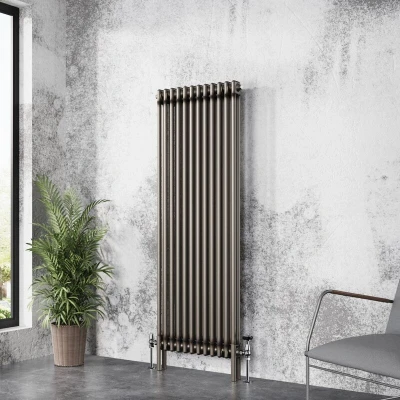 NRG 1500 x 560mm Raw Metal Traditional Cast Iron Style Double Column Vertical Radiator Central Heating Perfect for Bathrooms, Kitchen, Living Room